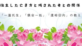 浄土教思想 浄土に往生した故人と残された者の関係―「一蓮托生」「俱会一処」「還相回向」とは何か?― 【僧侶・研究者が分かりやすく解説】 浄土に往生した故人と残された遺族は、完全に切り離されているのではありません。浄土教では、両者の間には一蓮托生・俱会一処・還相回向という大切な関係があると考えます。これが何かを、僧侶・研究者が分かりやすく解説します! 2025.01.17 2025.03.12 浄土教思想