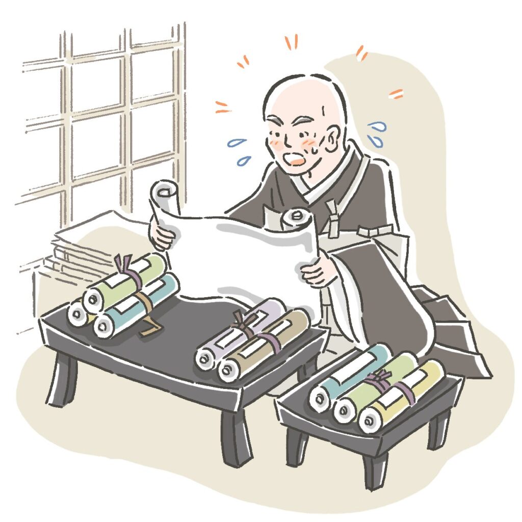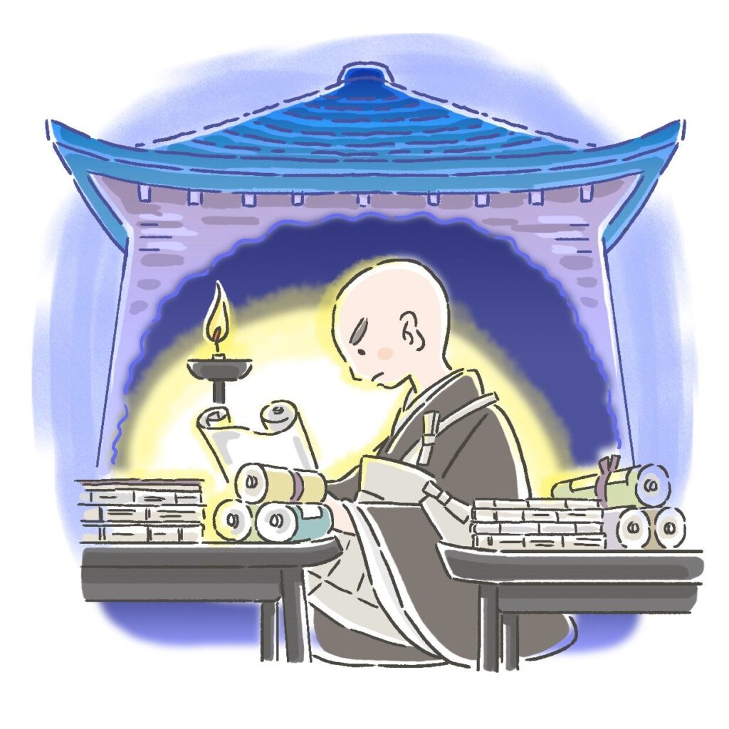 法然は、黒谷の報恩蔵(仏典の収蔵庫)にこもり、あらゆる経典を読みふけったのです。
